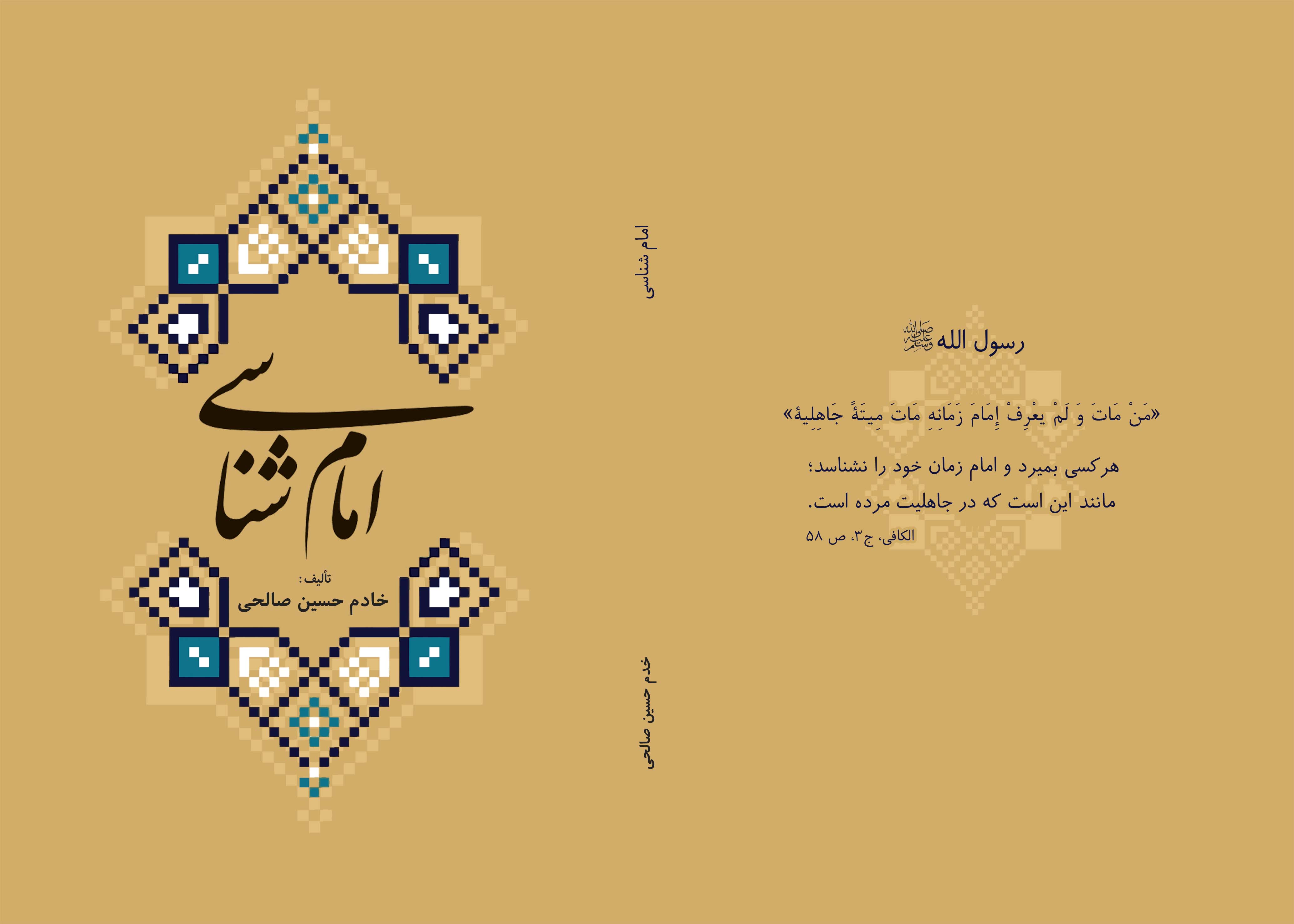 امام شناسی نویسنده: خادم حسین صالحی ■ ناشر: انتشارات رسالت یعقوبی ■ چاپ: اول 1403 ■ تعداد: 500 نسخه ■ قیمت: 300،000 تومان شابک: 1-67-7234-622-978 تمامی حقوق این اثر متعلق به مؤلف میباشد. مرکز پخش: قم: بلوار معلم، مجتمع ناشران، انتشارات رسالت یعقوبی واحد 41 تلفن: 37742092 فاکس: 37739264 همراه: 09122511196